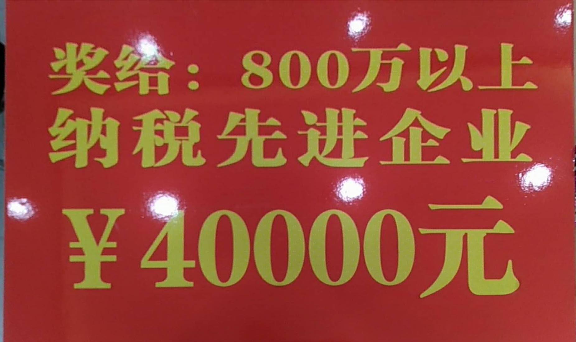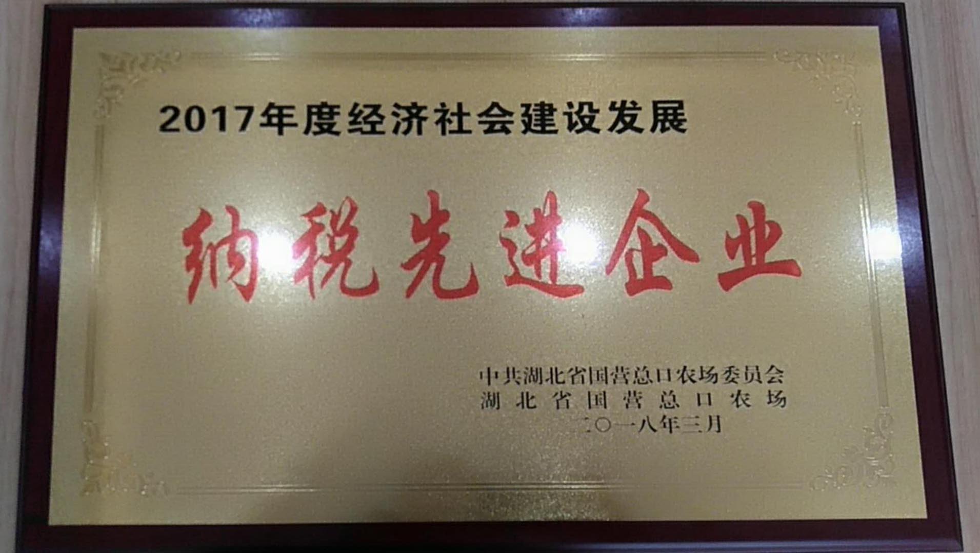 榮獲總口農場(管理區)頒發的“納稅先進企業”獎